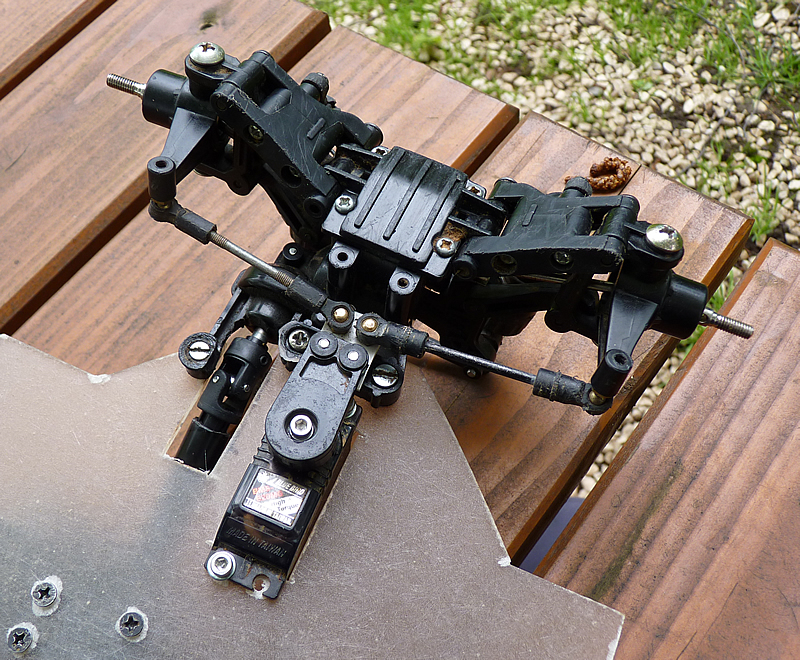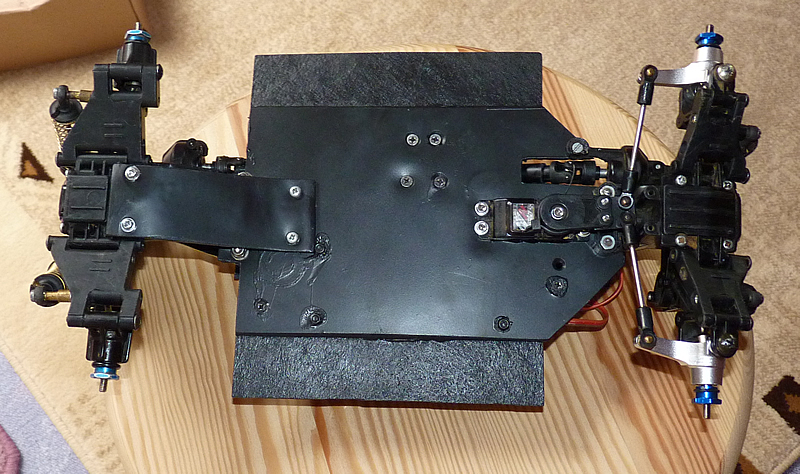 Vornerum ist die Platte auch durch den Servo zwar etwas geschwächt, aber der Schutz fürs Lenkgestänge wird das kompensieren.
