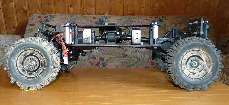 Es handelt sich dabei um ein Chassis des M1025 Hummers, das wegen der längeren Schwingen mehr Federweg erlaubt. Natürlich kann man auch eins mit roten Getriebegehäusen nehmen.